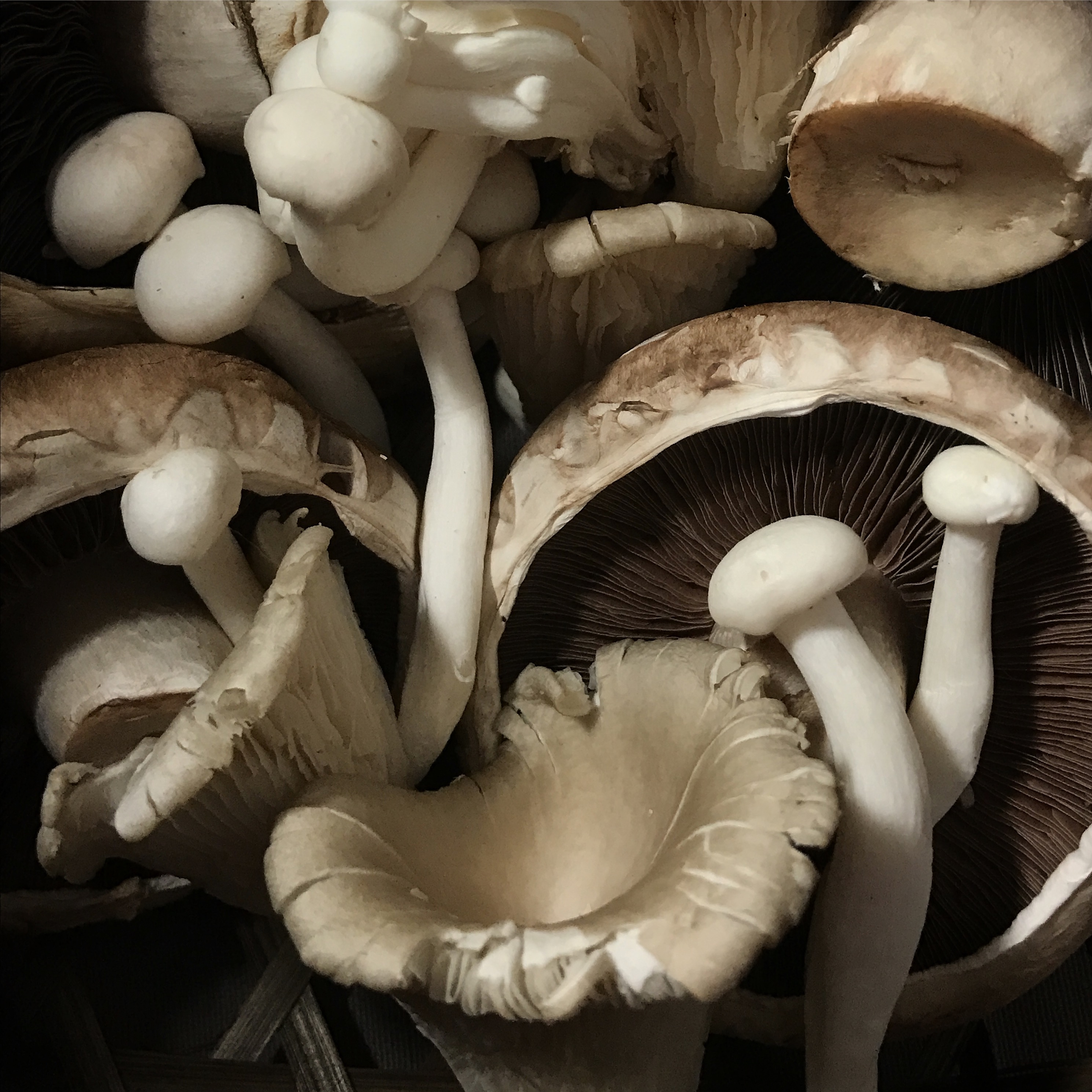 A pile of four varieties of edible mushrooms