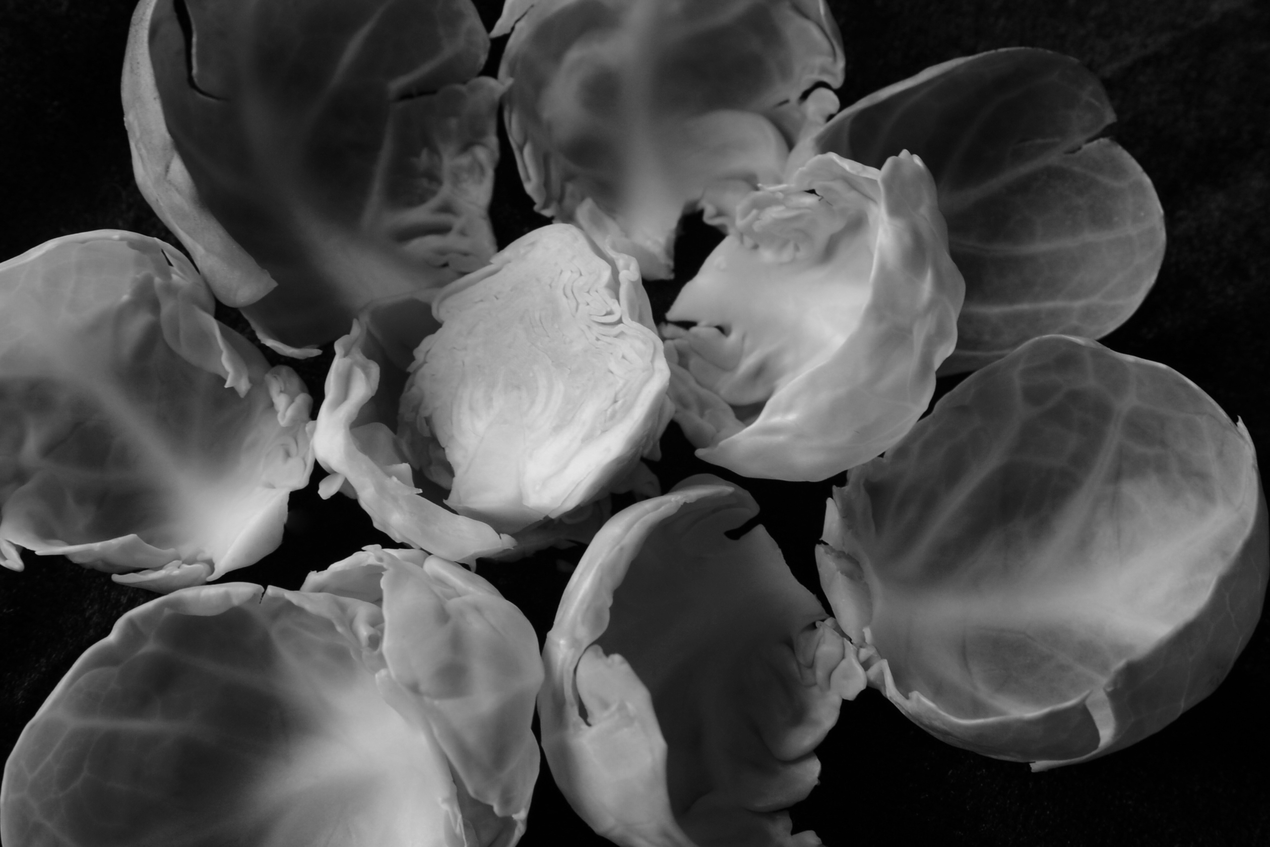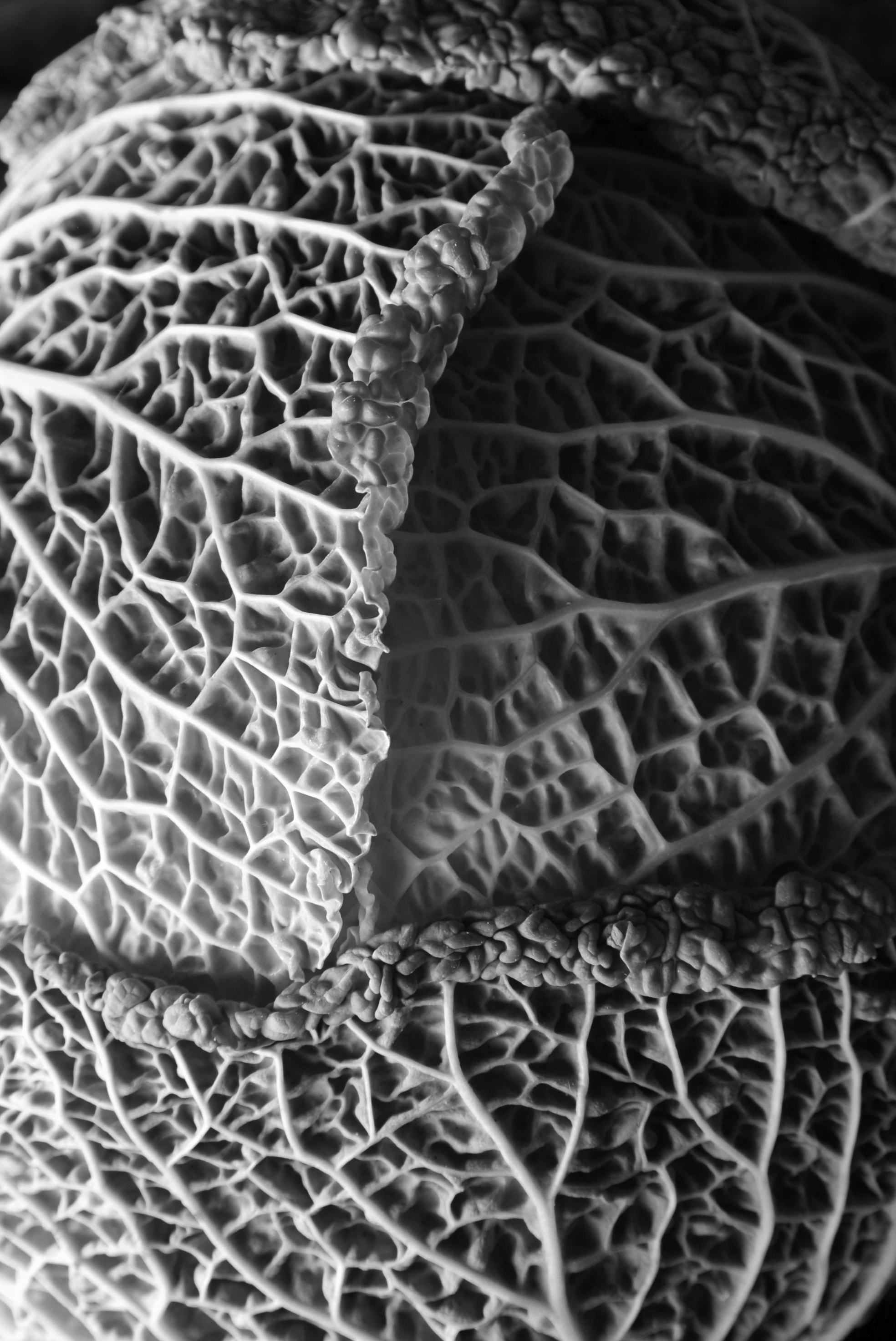 I don’t often work in black and white because the joy of the food I generally work with is it’s vibrant colours. This project was really stimulated by the beautiful savoy cabbage, it was sitting on my worktop and I couldn’t take my eyes off the incredible structures and textures. I saw the light creating paths and gullies and decided I wanted to photograph it in black and white.