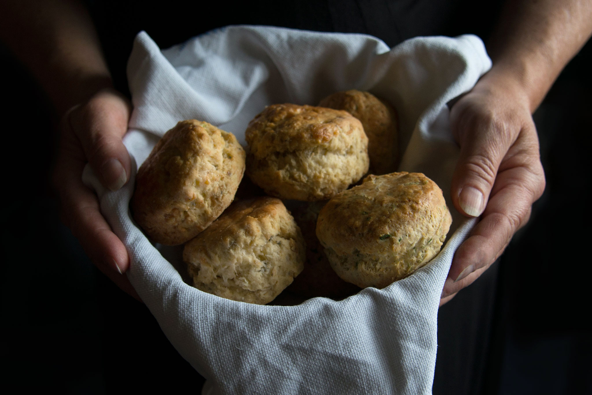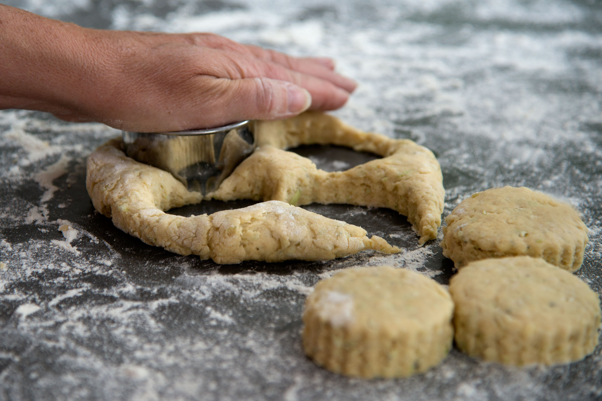 There are different ways to tell a food story and for this one I decided to create a series from rolling out to serving up. I’m not sure I’ll get any hand modelling contracts in the near future but there is something about being in the frame, photographer and photographed. The finished scones are a little mean and moody but I liked how the light caught the textures.